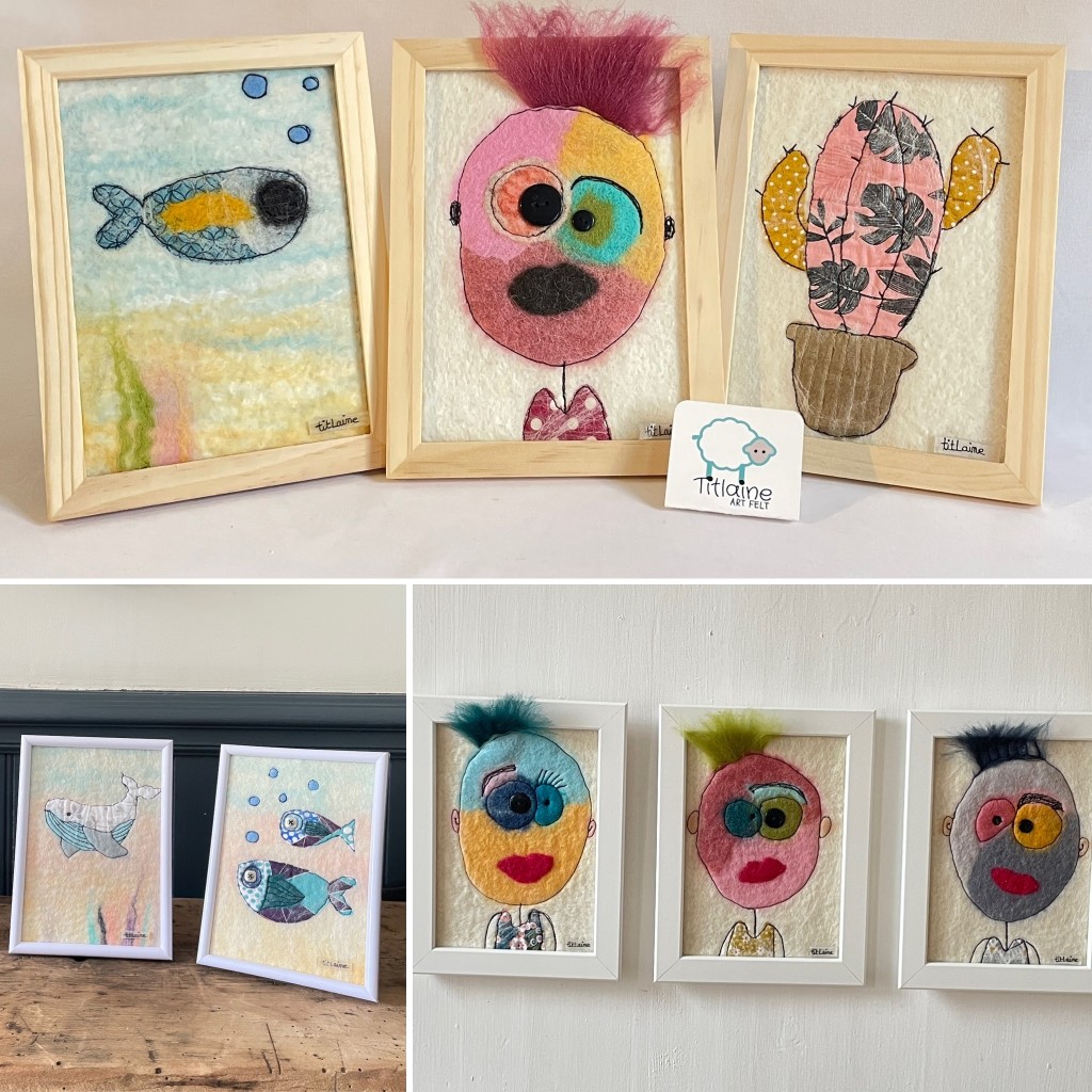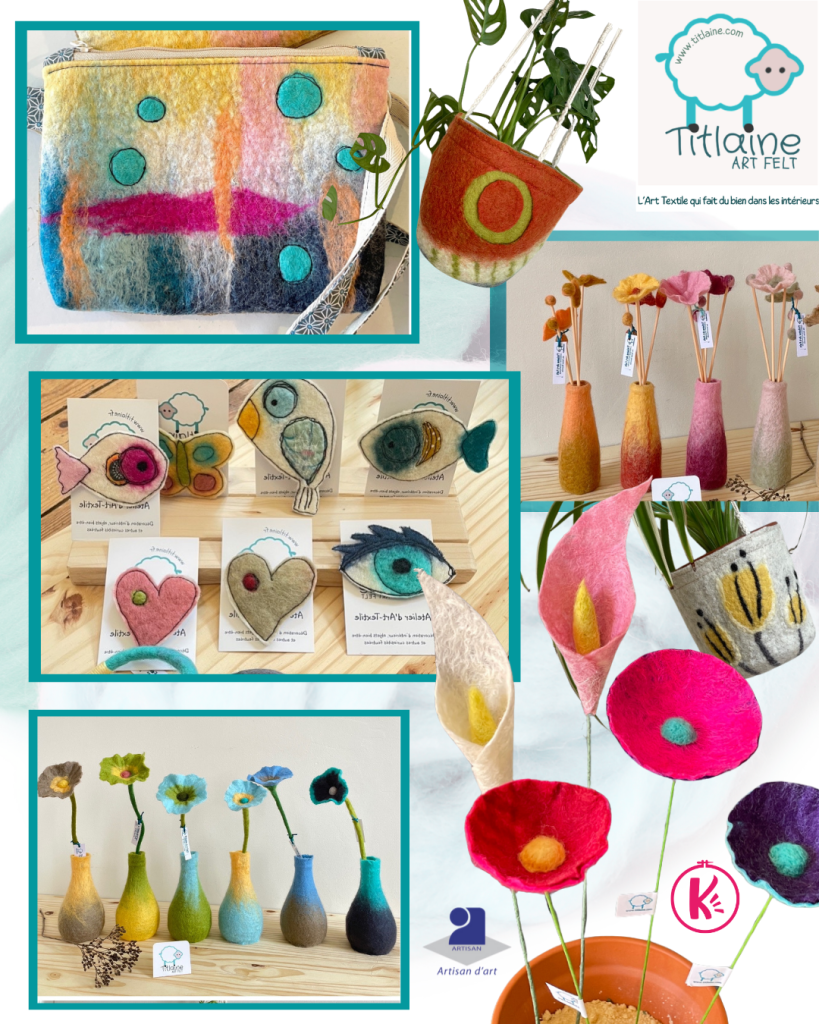 Hélène est une passionnée de loisirs créatifs, qui petite jouait entre les rouleaux de tissus, s’extasiait devant toutes ces couleurs de fils et qu’on appelait Titlène (de petite Hélène). Quelques années plus tard en 2013, elle s’initie au feutre de laine en loisirs puis la passion grandit, des formations de feutrière et expérimentations plus tard, elle crée sa marque en 2019 sous le nom de Titlaine Art Felt.