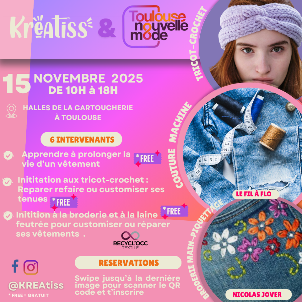 Forum des associations en partenariat avec Fabriqué en Occitanie, Toulouse Nouvelle Mode vous propose de découvrir des créateurs et créatrices, des artisans et artisanes, des structures responsables et engagées. Fabriqué en Occitanie est un réel repère pour vous aider à acheter local.